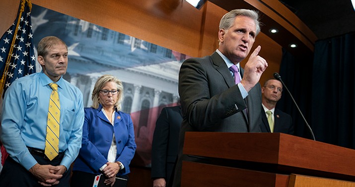 There’s another possibility, though. Maybe McCarthy is actually engaged in a bit of kabuki with help from his number three, Liz Cheney. Normally when the minority leader says he’s voting with the president on a major bill, that’s a major influence on the leadership and the rest of the caucus. But not this time: