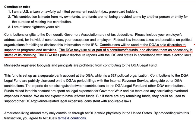 AS you would expect, the entire thing is a scam. Not only is that on-brand for politics, but it is utterly on-brand for Tim Walz. If you are stupid enough to contribute to this, believing that it is for a Tim Walz legal defense fund, please contact me. I have a bunch of REALLY GOOD CAUSES that I would like you to contribute to.