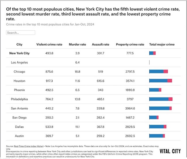I'm also pretty sure the Mamdani approach to criminal justice will have a strong impact. We tend to think of New York as crime-ridden, but compared to other big Blue cities, it really isn't. Soon it will be.