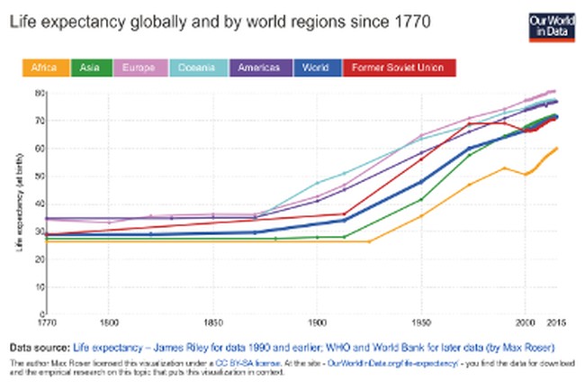 It's pretty clear that one of the biggest contributors to the extension of human lifespan has been the discovery and use of oil, without which the modern world would have been impossible.