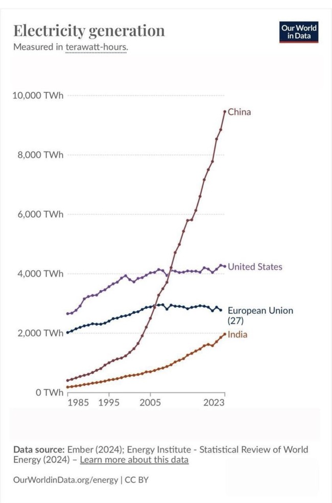 The EU's power production is declining, which is why its economies have stalled.