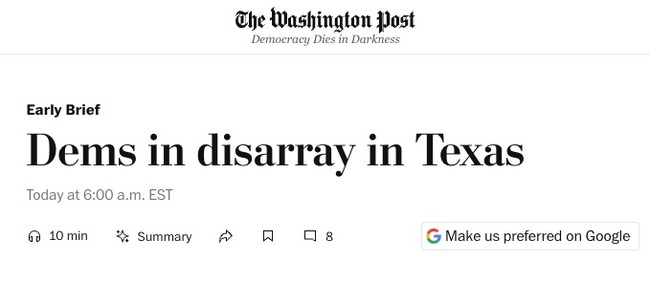 I hear you gasp in disbelief, and I share your pain amusement. But in this case, the Washington Post focuses mainly on the real problem, which is a state party that seems to believe it's in California rather than Texas. Here's the headline, in case an editor figures out a way to blame the GOP later today: