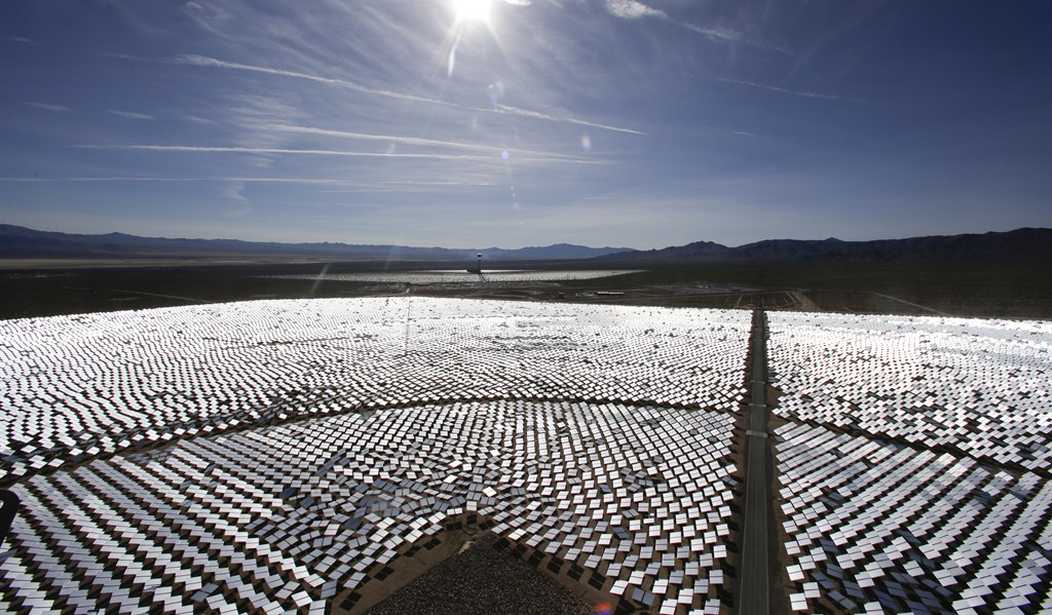I was in Las Vegas with my family the week before Christmas. On the drive back to California we passed a solar generation site called Ivanpah. If you haven't seen this before it's pretty striking in person. Instead of using photo-voltaic cells, the site has three towers surrounded by mirrors. The mirrors focus light and heat on the towers which use the concetrated heat to turn turbines.