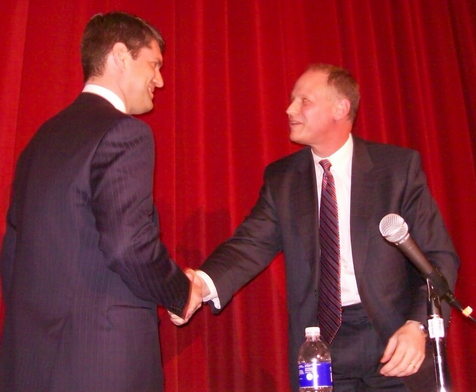 Burns shakes hands with the loser of the debate.