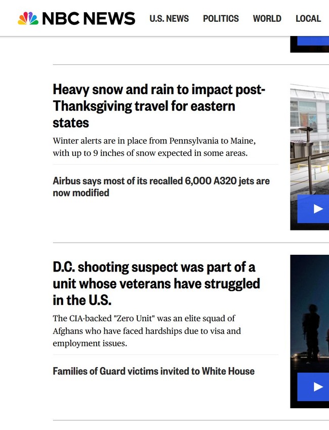 Here it is, only Monday, and it's already faded from the front page of the liberal media. CNN has nothing more about it. NBC News is talking about a shooting, but it's what seems to be a sympathetic article about the 'struggles' of the unit the Afghan assassin who killed our National Guardsmen in Washington belonged to.