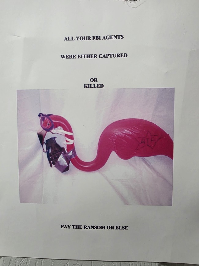 We weren't to alert authorities or the press, and had to deliver three cases of Natural Lite (in cans) to an undisclosed location... or the undercover Fed flamingoes would pay.